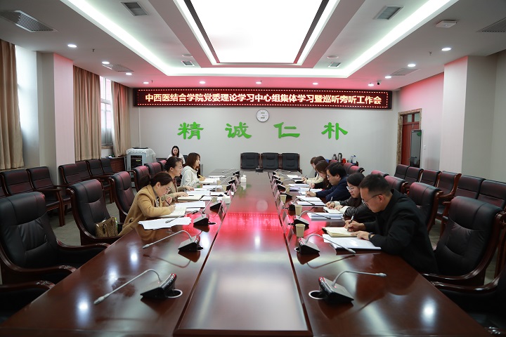 11月14日下午,中西医结合学院党委召开理论学习中心组集体学习会。校党委委员、副校长、第七巡听旁听工作组组长孙静一行到会指导。会议由中西医结合学院党委书记董芳主持。