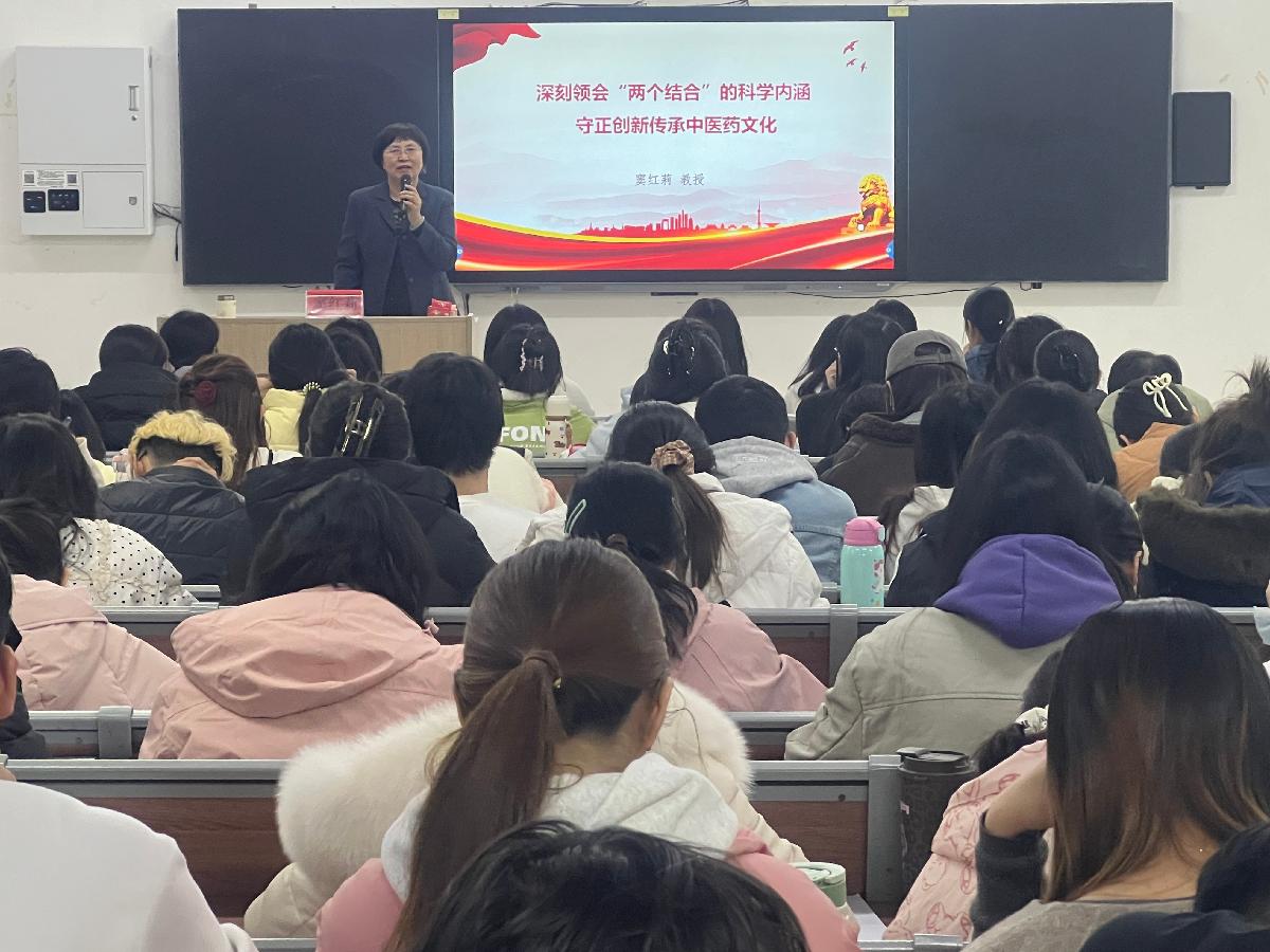 窦红莉以《深刻领会“两个结合”的科学内涵 守正创新传承中医药文化》为主题,展开了深入且精彩的讲解。她指出,中医药文化作为中华优秀传统文化的重要组成部分,承载着中华民族几千年的健康养生理念及其实践经验。将马克思主义基本原理同中医药文化相结合,能够为中医药的发展提供科学的理论指导与方法论支撑,推动中医药在守正的基础上实现创新发展。学员们全神贯注地聆听,不时认真记录要点,积极互动交流,现场学习氛围热烈而浓厚。